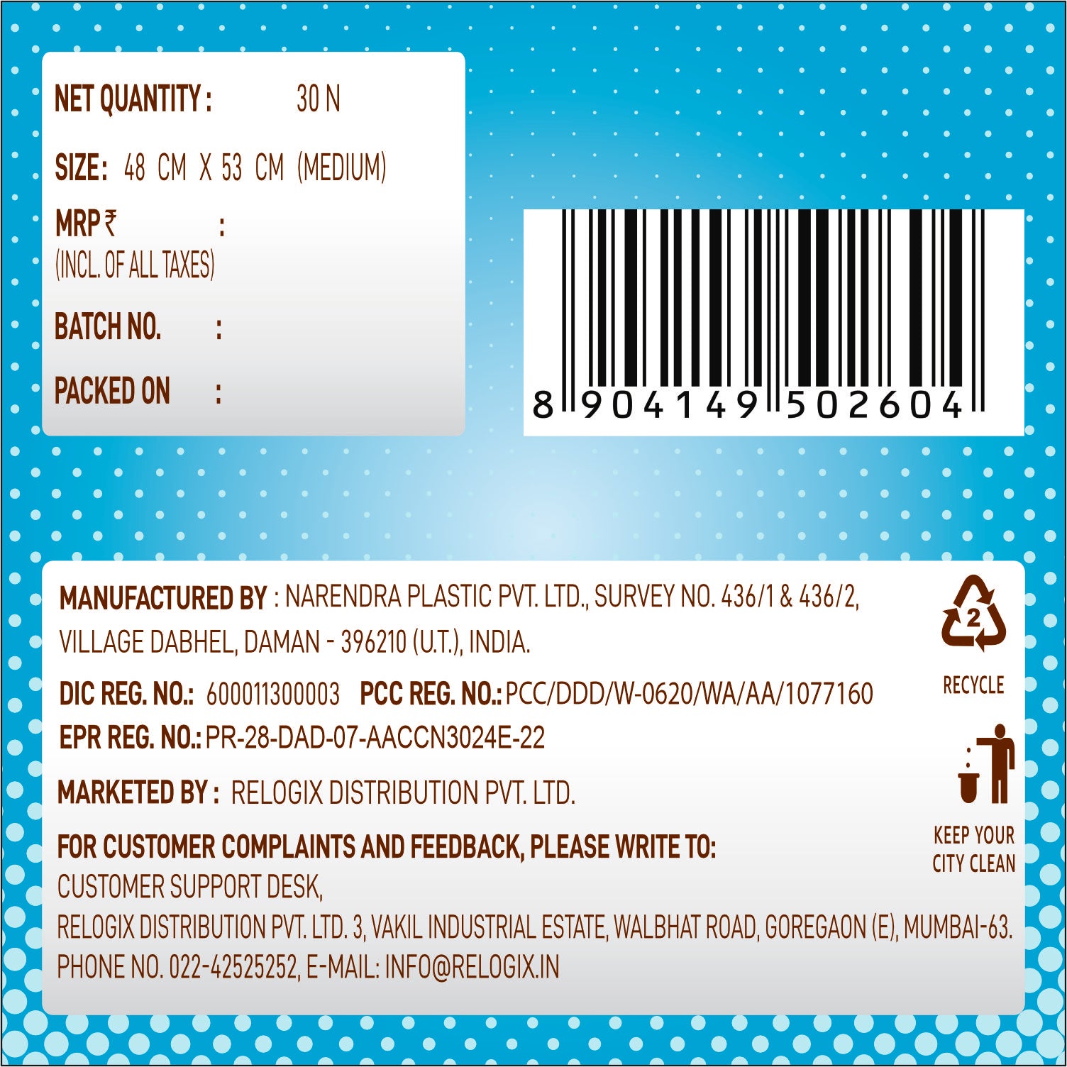 Order your own garbage bag online from our website and make your chores hassle-free. Take a step towards a sustainable lifestyle with Crystal.