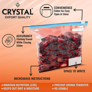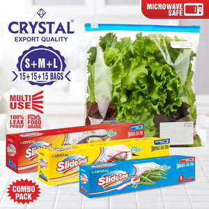 Crystal SlideSeal Storage Bags - Multi Pupose, Reusable, Freezer, 100% Leak Proof, FDA Food Grade - SMALL+MEDIUM+LARGE , 15 Pcs x Pack of 3 , 45 Bags